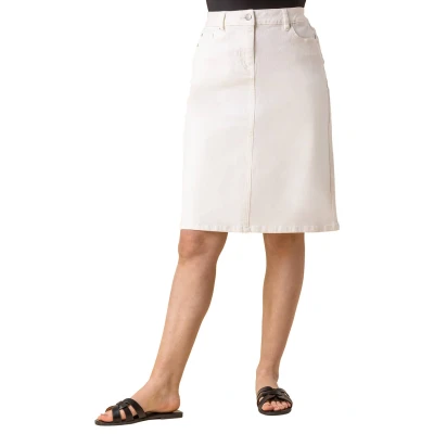 Roman Originals Denim Skirt with Pockets for Women UK Ladies Jean Skirts Cotton Stretch Mid Wash Fitted A Line Casual Smart Work Office Knee Length Flattering Slimming White Size 16