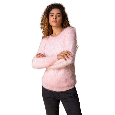 Roman Originals Fluffy Yarn Jumper for Women UK Ladies Thick Sweater Warm Cosy Chunky Knitted Pullover Winter Furry Casual Smart Textured Everyday Cuddly Comfy Soft Knitwear Light Pink Size 20