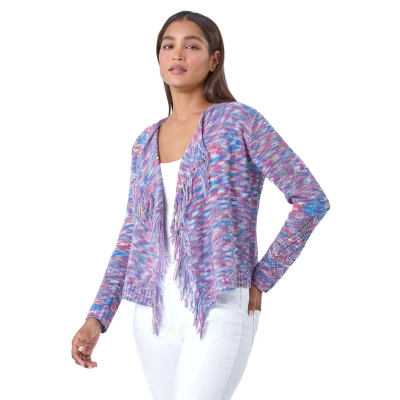 Roman Originals Fringe Detail Waterfall Cardigan for Women UK Ladies Everyday Holiday Spring Summer Edge to Opening Comfy Soft Evening Vacation Work Party Purple Size 20
