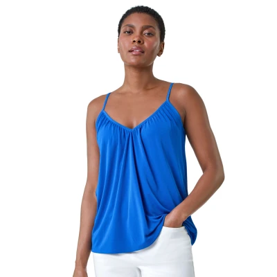 Roman Originals Gathered V Neck Stretch Vest Top for Women UK Ladies Everyday Holiday Spring Summer Neckline Comfy Soft Evening Vacation Work Party Royal Blue Size 18