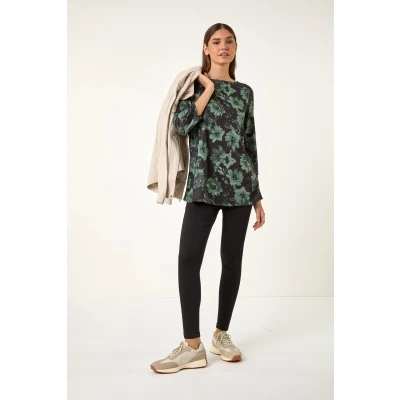 Floral Print Stretch Tunic Top from Roman. Get ready to make a bold statement in this eye-catching all-over large-scale floral print tunic. Crafted from a snit stretchy jersey fabric, this top features a flattering slash neckline and trendy 3/4 sleeves. The tunic silhouette finishes at hip length, perfect for adding a touch of style to your Autumn Winter closet. Style with jeggings and ankle boots for a complete look!