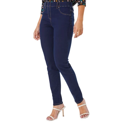 Roman Originals Jeggings for Women UK Jean Ladies Stretchy Trousers Denim Leggings High Waist Rise Pull On Skinny Straight Leg Cotton Pants Smart Casual Petite Dark Indigo (28 inch) Size 12