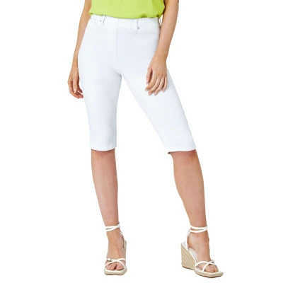 Roman Originals Knee Length Jeggings for Women Ladies Stretch Denim Shorts Jeans Cropped Trouser Capri Pants Summer Cotton Legging Pedal Pusher Legged Crop Spring Cutoff Work White Size 18