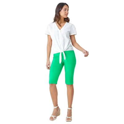 Roman Originals Knee Length Shorts for Women UK Ladies Cropped Capri Stretch Bengaline Pants Crop Trousers Summer Legging Lounge Essentials Elasticated Casual Clothes Pale Green Size 20