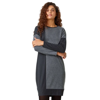 Roman Originals Knitted Jumper Dress for Women UK Ladies Colour Block Winter Autumn Smart Casual Office Bodycon Workwear Everyday Long Sleeve Knee Length Knit Pocket Grey Size 20
