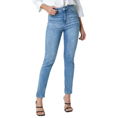 Slim Leg Stretch Mom Jeans from Roman. These high waisted vintage wash mom jeans will be your new best friend, another essential piece to add to your everyday wardrobe. Featuring belt loops around the waist and an ankle grazing hem length, these jeans even come with a 5 pocket design because who doesn't love pockets! Pair with a plain top for a casual everyday outfit or dress them up with heels and an off the shoulder top for a spring evening inspired look.