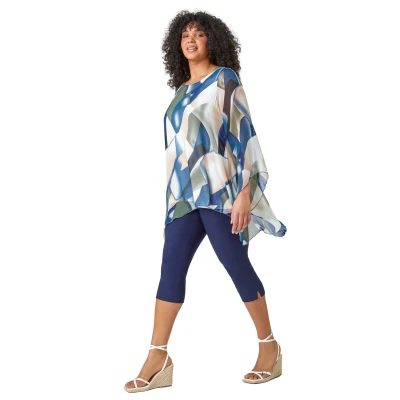 Curve Abstract Chiffon Overlay Top from Roman. If you’re looking for a striking occasion wear top, then this curve, chiffon overlay top is perfect. Cut from a smooth, chiffon fabric this piece features a sophisticated, round neckline and fun 3/4 length sleeves. Adorned in an oversized, abstract print in on trend colours, this piece is a new season must have. Finished with an asymmetric hem this top has a jersey under lay for comfort and coverage. Pair with trousers and heels for a smart, on trend look!