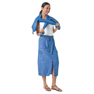 Roman Originals Pocket Detail Cargo Skirt for Women UK Ladies Everyday Holiday Spring Summer Comfy Soft Evening Vacation Work Party Denim Size 16