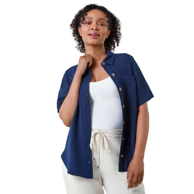 P - Button up Shirt from Roman. Elevate your casual collection with our Petite button-through shirt. Cut from a floaty woven fabric, this lightweight shirt features a classic collar, short sleeve and a playful patch pocket at the bust. It has a full button through front that’s detailed with feminine tortoise shell buttons to fasten. Wear with jeans and a cami for a versatile look or dress it down for holidays with breezy linen trousers and sandals on the beach!
