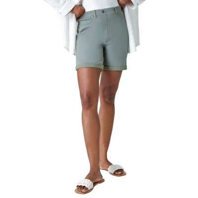 Stretch Elastic Waist Turn Up Shorts from Roman. Say hello to your newest Summer must have! These turned up hem shorts are guaranteed to become a suitcase staple. Crafted from a our favourite bengaline stretch fabric, these shorts curve to the contours of your body, providing maximum comfort and style. Complete with stitch pocket detail, functional belt loops and button detail, these mid-length shorts are versatile and right on trend. Pair with printed blouses and sandals or plain bodies and lightweight cardigans for relaxed Summer looks!