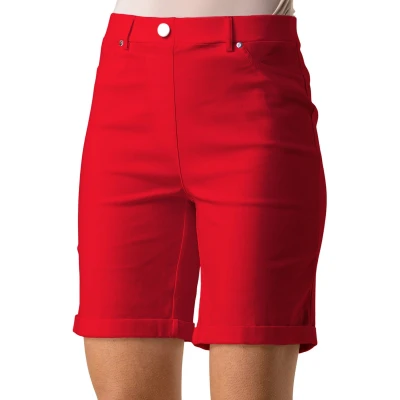 Roman Originals Stretch Shorts for Women UK Ladies Pull On Turned Hem Cut Off Bengaline Mom Boyfriend Boy Denim Casual Cropped Pants Capri Slim Fit Turn Up Summer Crops Mother Red Size 18