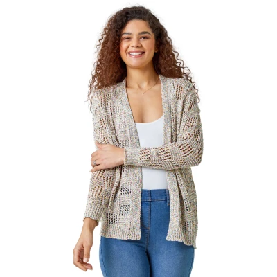 Roman Originals Tape Knit Cotton Blend Cardigan for Women UK Ladies Everyday Holiday Spring Summer Comfy Soft Evening Vacation Work Party Multi Size 18