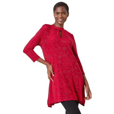 Roman Originals Textured Print Keyhole Tunic Stretch Top for Women UK Ladies Everyday Autumn Winter High Neckline Comfy Soft Evening Vacation Work Party Night Out Red Size 12