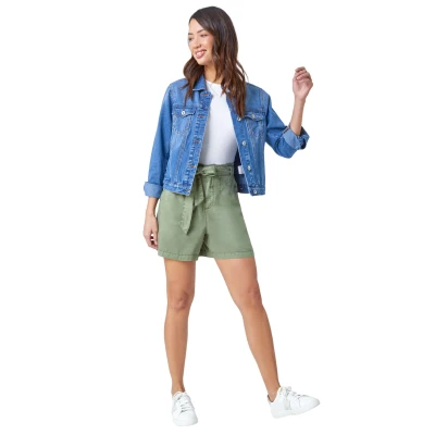 Roman Originals Textured Tie Waist Cotton Shorts for Women UK Ladies Everyday Holiday Spring Summer Comfy Soft Evening Vacation Work Party Sage Size 20