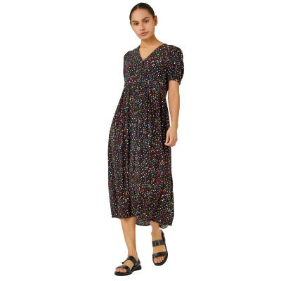 Secret SalesDitsy Spot Print Button Down Dress from Roman. Feel free, floaty and fabulous all season long with our scattered spot print midi dress. Cut to a relaxed silhouette and fastened with a full button opening to the front with cuffed sleeves, this mid-length dress comes in an all-over bright print with a gathered waistline. Pair with your everyday trainers for a casual daytime look or dress it up with heeled sandals and a clutch for a playful evening look.
