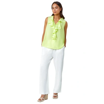 Roman Originals Women Frill Front Vest Top Ladies Ruffle Blouse Summer Spring Special Occasion Evening Holiday Cruise Cocktail Party Short Long Sleeve Sleeveless V Neck Petite Lime Size 12