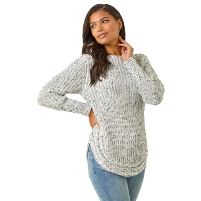 Secret SalesCurved Hem Stitch Detail Jumper from Roman. A classic chunky knit featuring stitch detailing, a round neckline, long sleeves and a ribbed hem, this cosy jumper is just what the cold weather ordered. Its oversized fit looks great with jeans and pumps for relaxed dressing through the season.