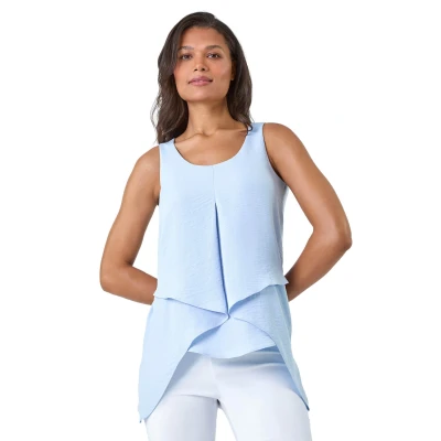 Secret SalesAsymmetric Sleeveless Vest Top from Roman. Soak up the sun this Summer in our staple asymmetric vest top! Crafted from floaty chiffon fabric, this vest top boasts a relaxed, loose fit with a scoop neckline, making it an absolute holiday staple. Featuring a layered hem for a feminine and floaty fit, this style has a sleeveless silhouette that is great for warm weather or for layering with a denim jacket. Pair with shorts and trainers for a city break or jeans and sandals for effortless casual dressing.