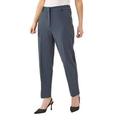 Roman Originals Work Trousers for Women UK Ladies Office Smart Stretch Suit Pants Cigarette Straight Leg Tailored High Elasticated Waist Tapered Ankle Grazer Slim Grey Short (25 inch) Size 18