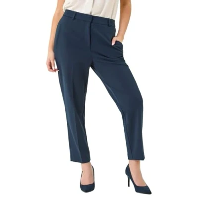 Roman Originals Work Trousers for Women UK Ladies Office Smart Stretch Suit Pants Cigarette Straight Leg Tailored High Elasticated Waist Tapered Ankle Grazer Slim Short Navy (25 inch) Size 12