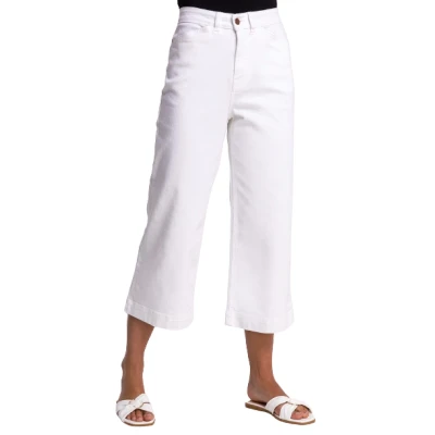 Roman Originials Denim Culottes for Women UK Ladies Cotton Cropped Trouser Wide Leg Jean Stretch Pants Capri 3/4 Length Three Quarter Summer Loose Casual Spring Lounge Pockets White Size 18