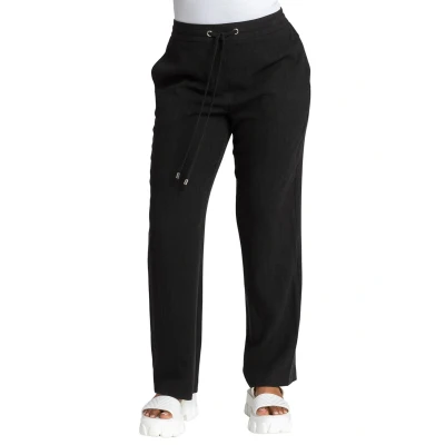 Roman Petite Womens Linen Elastic Waist Tie Front Joggers Black Size 14 UK