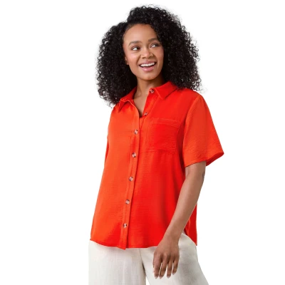 Secret SalesP - Button up Shirt from Roman. Elevate your casual collection with our Petite button-through shirt. Cut from a floaty woven fabric, this lightweight shirt features a classic collar, short sleeve and a playful patch pocket at the bust. It has a full button through front that’s detailed with feminine tortoise shell buttons to fasten. Wear with jeans and a cami for a versatile look or dress it down for holidays with breezy linen trousers and sandals on the beach!