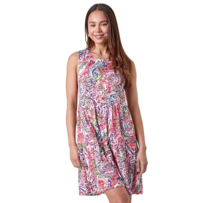 Roman Petite Womens Paisley Print Tiered Dress Pink Size 14 UK