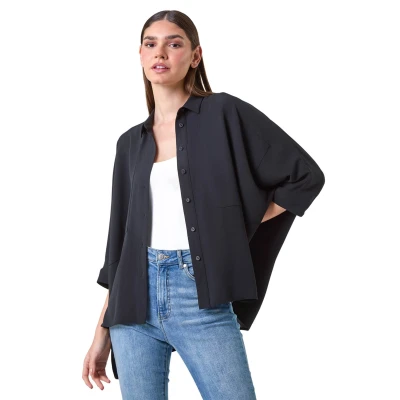 Relaxed Smart Stretch Shirt from Roman. Build your smart collection with ease with this relaxed stretch shirt. Cut from a woven stretch fabric, this piece features a smart collared neckline and simple 3/4 length sleeves. It boasts a fully open, button-up front for customisable styling. Pair with tailored trousers for work or style with jeans for the perfect smart-casual look!