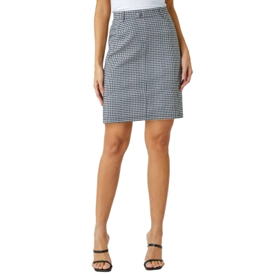Gingham Straight Stretch Skirt from Roman. Ultimate comfort is achieved with this straight, stretch skirt. Cut from our favourite, woven stretch fabric this piece is designed in a straight style and falls just above the knee. Features include belt loops, button detail and a timeless gingham check print. With no tricky fastenings and an elastciated waistband, this piece is deisgned to pull on for quick and easy dressing. This piece can elevate any outfit with a matching jacket and plain tee!