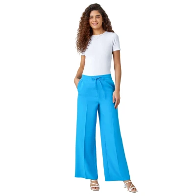 Roman Wide Leg Trousers for Women Ladies Linen Dressy Joggers Sweatpants Lounge Tie Front Tracksuit Bottoms Palazzo Yoga Jogging Gym Casual Loungewear Daywear Work Holiday Turquoise Size 18