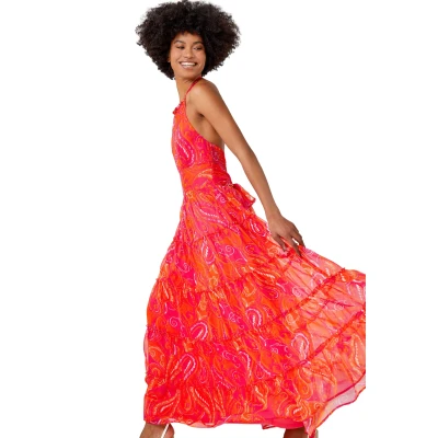 Paisley Print Halter Neck Maxi Dress from Roman. Colourful prints and sleeveless styles are Summer essentials. Cut from a smooth woven fabric this piece features a modest halter neckline and is designed in a cool, sleeveless style. Adorned in a pretty paisley print this dress features a thick shirred waistband creating flattering shape. The skirt falls in tiers to its maxi length. Add heeled wedges a denim jacket for a perfect holiday look!