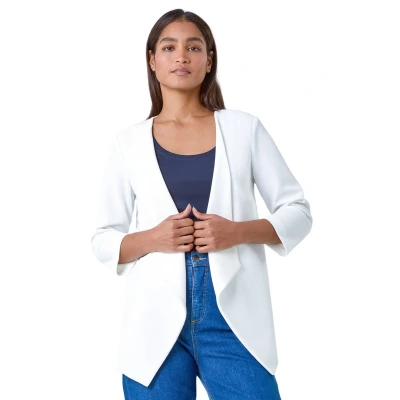Roman Womens 3/4 Sleeve Lace Back Waterfall Jacket White Size 12 UK