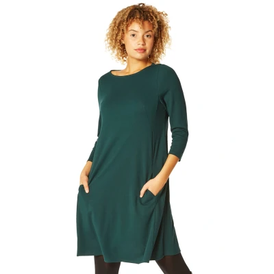 Roman Womens A Line Pocket Detail Swing Dress Dark Green Size 20 UK