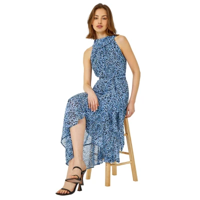 Roman Womens Animal Print Halter Neck Midi Dress Blue Size 20 UK