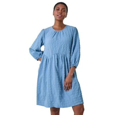 Bubble Textured A-Line Stretch Dress from Roman. Add pretty textures to your everyday collection this season, with this easy-to-wear A-line dress. Crafted from a stretch jersey fabric, this piece features a modest round neckline and 3/4 length sleeves, finished with elasticated cuffs. An empire waistline ensures a flattering and comfortable fit, while the all-over texture provides interest throughout. Pair with sandals and a denim jacket for a laid-back look, or add wedges and a sun hat for a day at the beach club!
