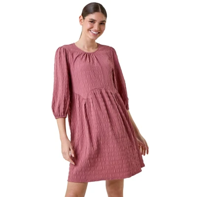 Bubble Textured A-Line Stretch Dress from Roman. Add pretty textures to your everyday collection this season, with this easy-to-wear A-line dress. Crafted from a stretch jersey fabric, this piece features a modest round neckline and 3/4 length sleeves, finished with elasticated cuffs. An empire waistline ensures a flattering and comfortable fit, while the all-over texture provides interest throughout. Pair with sandals and a denim jacket for a laid-back look, or add wedges and a sun hat for a day at the beach club!