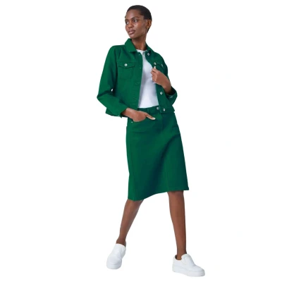 Roman Womens Classic Cotton Denim Jacket Green Size 16 UK