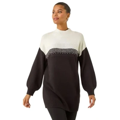 Roman Womens Colourblock Embellished Longline Jumper Black Size 20 UK