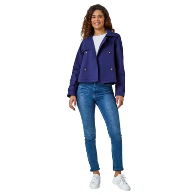 Roman Womens Cotton Blend Cropped Stretch Trench Coat Blue Size 16 UK