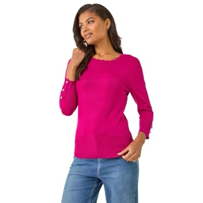Roman Womens Diamante Button Scallop Edge Jumper Fuchsia Size 18 UK