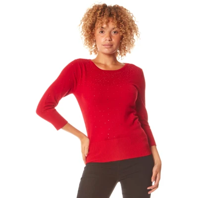 Roman Womens Diamante Studded Jumper Red Size 16 UK