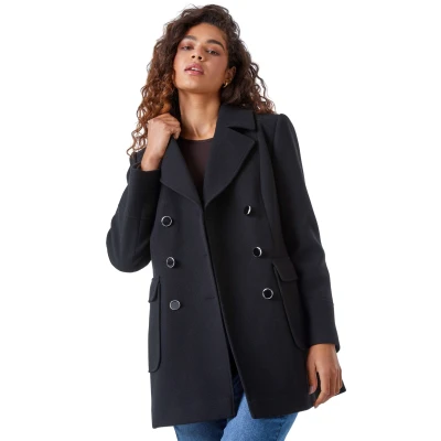 Double Breasted Longline Coat from Roman. No coat collection is complete without a smart, longline style. This double-breasted coat has a smart revere collar and sophisticated full-length sleeves with luxurious folded cuffs. It features practical front flap pockets and striking metallic button fastenings. Designed in a warm longline shape, providing extra coverage for the colder months ahead, this military style coat is cut from a luxurious woven fabric. Perfect for your every day, this coat is ideal for work but equally as stylish over your formal wear for the festive season ahead!