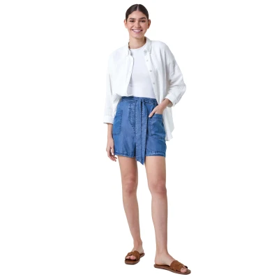 Elastic Tie Waist Pocket Shorts from Roman. Style your Summer staples this season with ease. Ideal for your warm-weather holidays, these casual shorts have a tie waist detail, elasticated waistband and turn up hem for a flattering fit. The woven fabric is super soft on the skin and has two patch pockets for your everyday essentials. Add these to your holiday collection this season, simply pair them with a vest top and sandals for comfy casual styling!