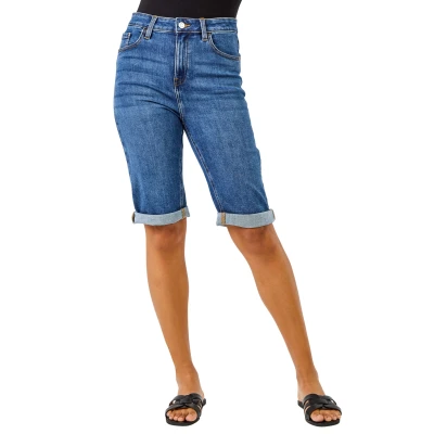 Essential Stretch Knee Length Shorts from Roman. Give your summer wardrobe a revamp with our new and improved knee length shorts. An essential for any ladies wardrobe, these long length shorts have a comfortable stretch and a turned up hem for those warmer days. Secured to the front with a button and fly fastening, these summer favourites are finished with pocket detail to front and back. Make sure to pack yours in your holiday suitcase, team with your favourite printed or plain tees and sandals for a warm weather look.