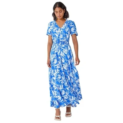 Roman Womens Floral Print Button Detail Maxi Dress Blue Size 12 UK