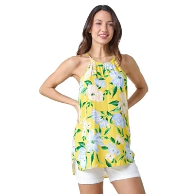 Roman Womens Floral Print Halter Neck Top Yellow Size 20 UK