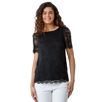 Roman Womens Floral Stretch Lace Top Black Size 12 UK