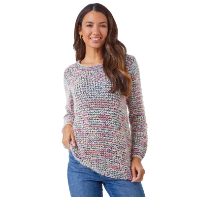 Fluffy Striped Curve Hem Jumper from Roman. Transition into the new season with some cosy textures and timeless silhouettes. This soft, fluffy jumper is cut from a mixed knit fabric and features a striking stripe detail. It has a flattering curved hemline and is cut in a longline style. Pair this crew neck jumper with mom jeans and boots for an off-duty look, or layer over leggings for comfy stay at home style! As we use Space Dyed yarns to achieve the look of Knitwear you love, the garment you receive may vary slightly to the product shown on our website.