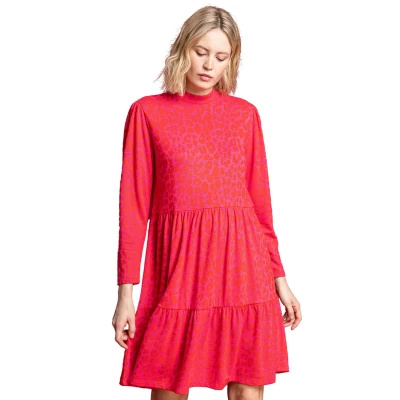 Jacquard Animal Print Tiered Dress from Roman. Chic casual dressing is just what we are after! A stunning animal jacquard tiered dress in a bold hue, this long sleeve dress is cut with a high neck and flattering tiers to form a floaty a-line shape. Ideal for accessorising with sparkles this season, our contrast animal print number will be sure to have you dancefloor ready or go for a stylish casual look with tights, boots and a biker jacket!
